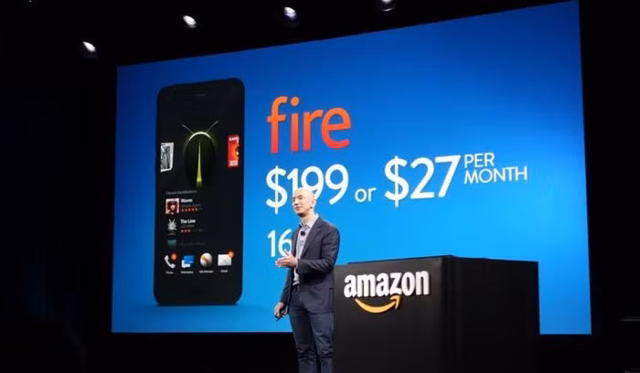 Fire Phone: Về cơ bản, đây là một máy tính bảng Fire dưới dạng điện thoại, được tỷ phú Jeff Bezos giới thiệu vào tháng 6/2014. Tuy nhiên, sản phẩm bị chê tơi tả do giá đắt và thiếu tính năng. Ảnh: AP/Ted S. Warren.