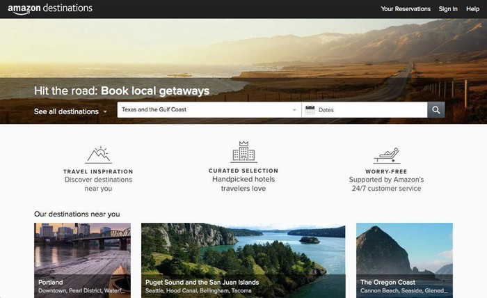 Amazon Destination: Ngoài mua sắm trực tuyến, Amazon cũng có một trang web đặt phòng khách sạn có tên Amazon Destination. Dịch vụ này dành cho khách hàng có nhu cầu tìm kiếm một nơi nghỉ chân nhanh chóng tại các thành phố lớn như New York hay Seattle. Ảnh: Business Insider.
