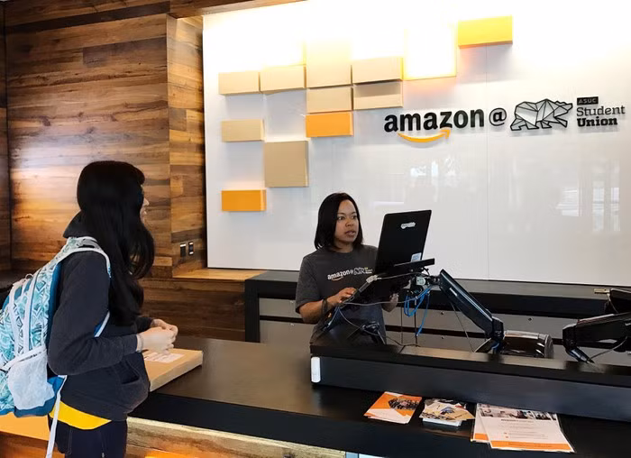 Bạn có thể đặt hàng từ ứng dụng Amazon và sử dụng mã vạch để truy cập tại các địa điểm Pickup được chỉ định. Sau đó, một nhân viên của Amazon sẽ vận chuyển hàng hóa cần thiết đến các điểm Pickup trong vòng vài phút sau khi nhận được lệnh đặt hàng từ khách hàng. Tuy nhiên, vào năm 2018, Amazon đã tạm ngừng dịch vụ này. Ảnh: Reuters.