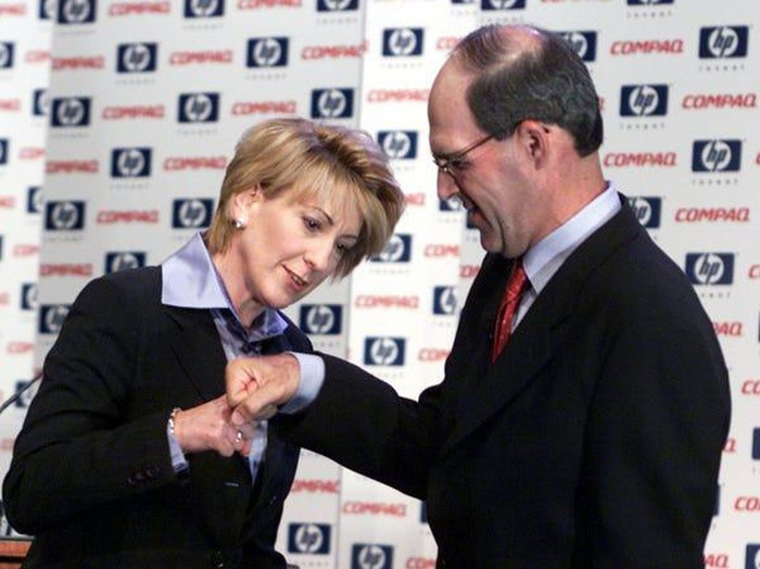 Trong bài viết “Những thương vụ mua bán, sáp nhập tồi tệ nhất ngành công nghệ” của ZDNet, thương vụ Compaq và HP đứng vị trí đầu tiên. Không chỉ khiến hàng chục nghìn nhân viên mất việc, sự thất bại của thương vụ đã được báo trước bởi nhiều cổ đông lớn - trong đó có Walter Hewlett, con trai của đồng sáng lập William Redington Hewlett. Trong ảnh là Carly Fiorina (trái), CEO HP và Michael Capellas, CEO Compaq sau cuộc họp báo diễn ra ngày 4/9/2001. Ảnh: Reuters.