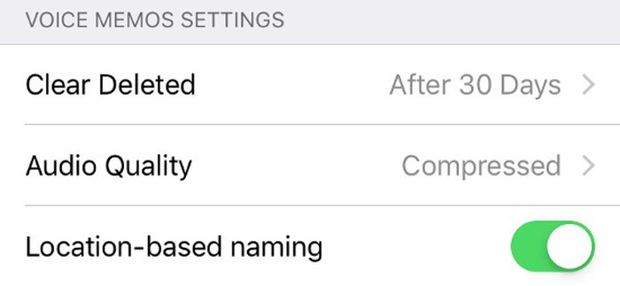 Cài đặt ghi nhớ giọng nói: Ứng dụng Voice Memos đã có bản sửa đổi rất cần thiết trong iOS 12. Ngoài việc thiết kế lại, ứng dụng cũng có một số tùy chọn tiện lợi. Chuyển đến menu Settings > Voice Memos, từ đây có thể chọn xóa các bản ghi âm sau một số ngày nhất định (Clear Deleted) và chọn muốn ghi âm ở định dạng âm thanh nén hoặc không mất dữ liệu hay không.