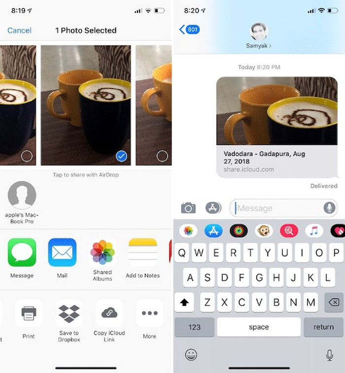 Chia sẻ nhanh hình ảnh bằng liên kết: Một trong những tính năng thú vị của Smart Photo Sharing của iOS 12 là khả năng tạo liên kết để chia sẻ tức thì hình ảnh hoặc album ảnh. Nếu đã bật tính năng iCloud Photo Library, bạn có thể chia sẻ một vài ảnh với bất kỳ ai ngay lập tức (như Dropbox) mà không cần họ đang sử dụng thiết bị iOS.