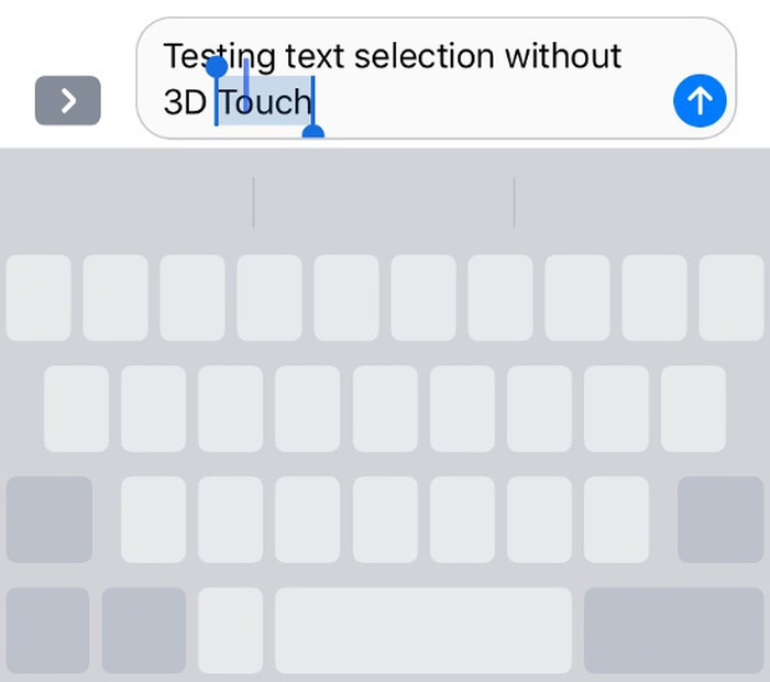 Nhấn phím Space để chọn văn bản trên các thiết bị không có 3D Touch: Nếu đang sử dụng iPhone hỗ trợ tính năng 3D Touch, bạn có thể kích hoạt nhấn bàn phím ảo để đưa ra công cụ chọn văn bản kiểu bàn di chuột. Nhưng với các thiết bị không có 3D Touch, chỉ cần nhấn và giữ phím Space để chọn đoạn văn bản bất kỳ.