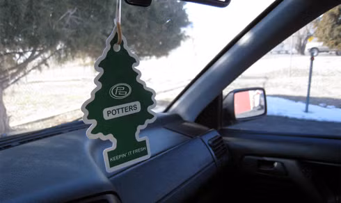 Mọi người đều quan niệm, miếng khử mùi sẽ giúp không khí trong xe luôn sạch sẽ, tươi mới. Thực sự thì tác dụng của miếng khử mùi rất hạn chế, khó có thể át đi mùi mồ hôi và thậm chí khi pha trộn sẽ trở thành một thứ mùi kinh khủng trên xe. Chưa kể nếu treo lủng lẳng dưới kính chiếu hậu trong xe, nó sẽ làm bạn phân tâm và trở thành mối nguy hiểm chân thực nhất khi bạn đang ngồi sau vô-lăng.