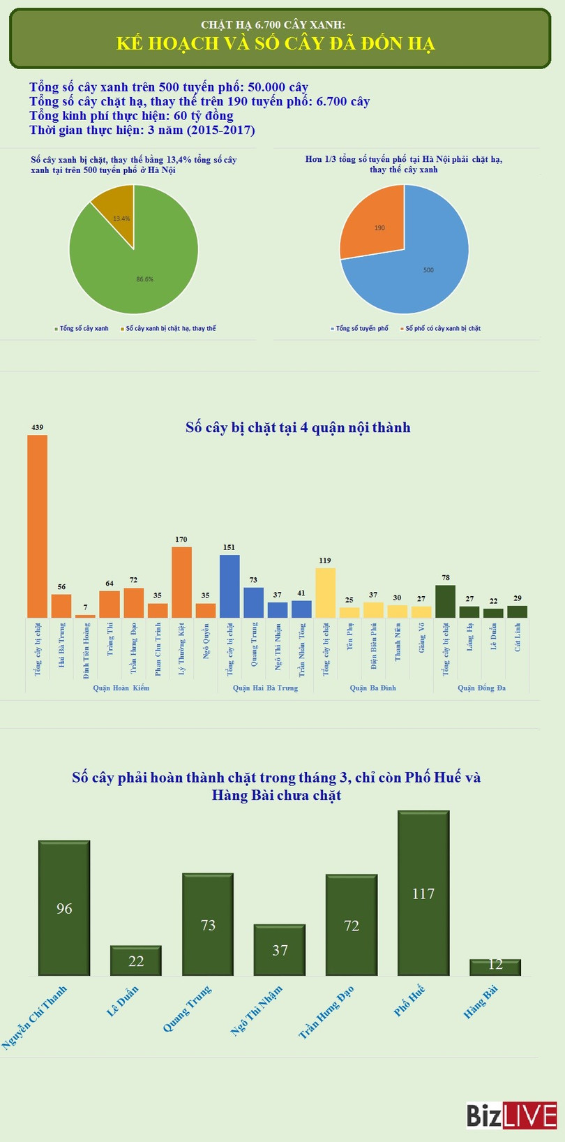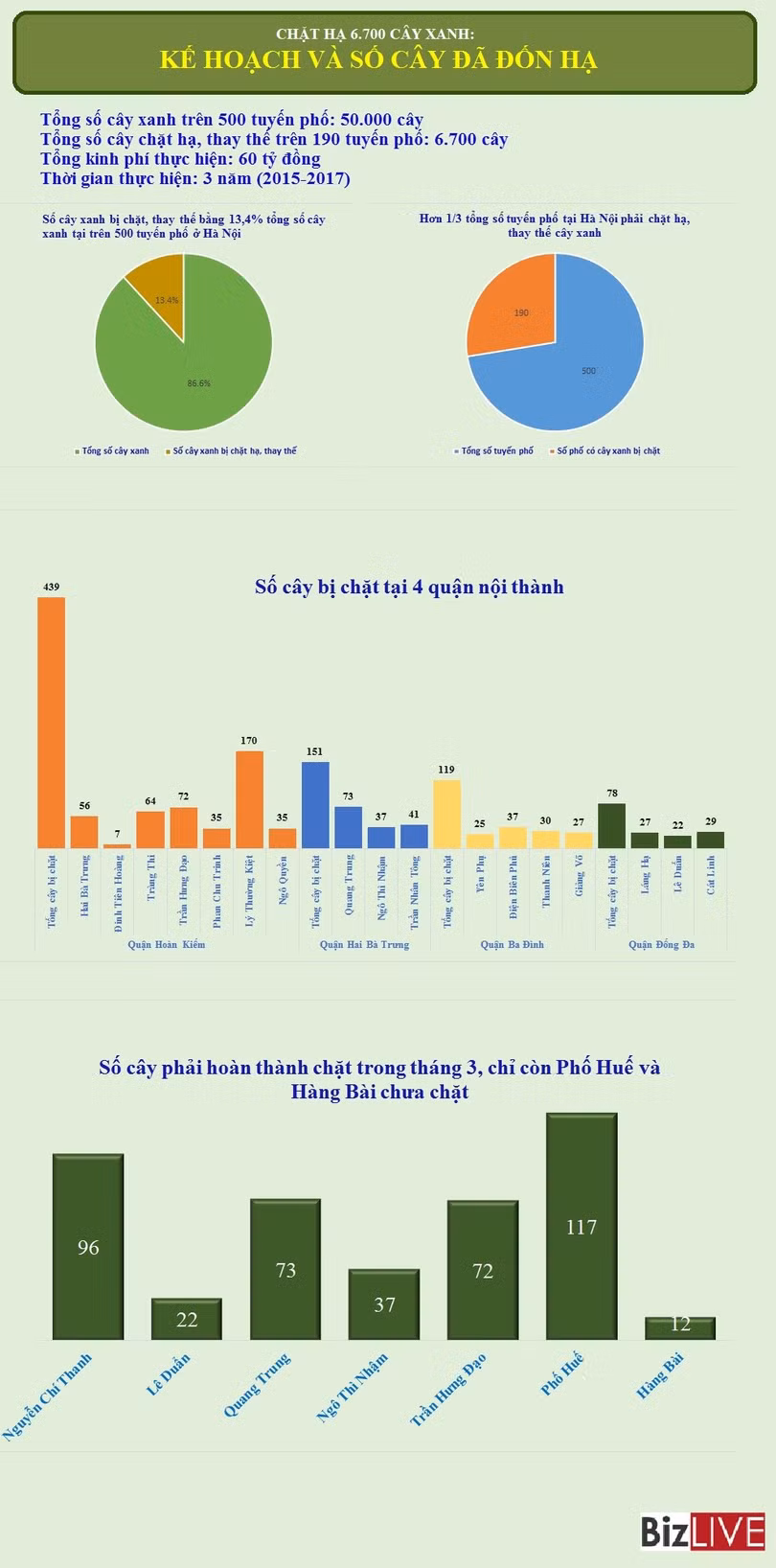 Trước khi Chủ tịch UBND TP. Hà Nội yêu cầu Sở Xây dựng, UBND các quận, và các đơn vị dừng việc thay thế cây xanh trên các đường phố, các đơn vị này đã kịp đốn hạ hàng trăm cây xanh tại nhiều tuyến phố lớn.