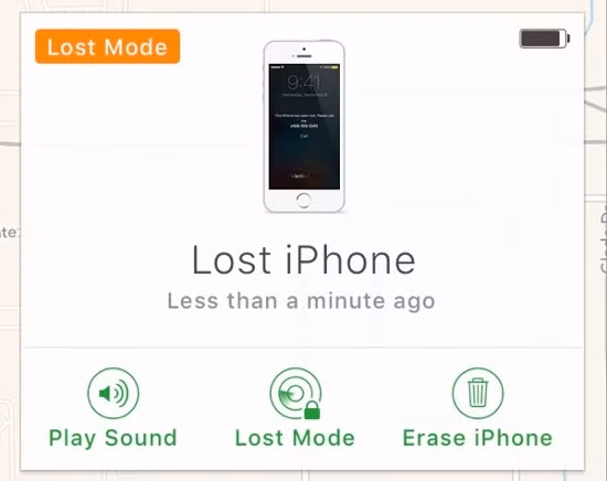 Khi xem vị trí của thiết bị, chọn Actions ở cuối màn hình, sau đó chọn Lost Mode. Rồi nhập số điện thoại và một thông báo sẽ được hiển thị trên màn hình khóa cho bất cứ ai đang cầm thiết bị của bạn để trả lại. Nếu mật mã không được thiết lập trên điện thoại được đặt ở chế độ Lost Mode, bạn sẽ được yêu cầu tạo mật khẩu trước khi bật Lost Mode.