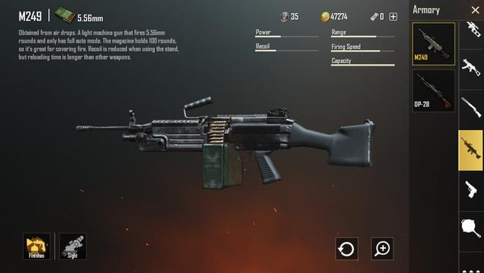 Có thể nói, M249 là khẩu súng bị bỏ lại trong hòm tiếp tế nhiều nhất trong game nhưng đối với những người chơi ở thứ hạng cao, đây lại là vũ khí khá hữu dụng. Những thành viên đảm nhiệm vị trí tấn công trong đội có thể sử dụng M249 khá hiệu quả bởi nó có thể dễ dàng phá thủng hàng phòng thủ kẻ địch. Ảnh: Wallpaper Cave.
