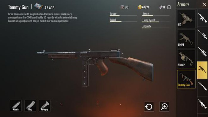Thompson/ Tommy Gun: Trong tựa game PUBG, Tommy Gun là khẩu súng duy nhất không cho người chơi thay đổi ống ngắm. Đây cũng chính là lý do khiến nhiều người chơi không mấy hứng thú với khẩu súng có vẻ ngoài khá cổ điển này. Ảnh: IGN.