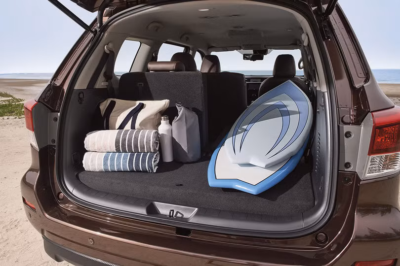 Hàng ghế thứ 3 sẽ gập theo tỉ lệ 50/50, cửa gió bố trí ở trên trần xe, có núm xoay chỉnh gió. Đáng tiếc, cửa cốp của Nissan Terra trên bản cao cấp lại chỉ trang bị tính năng đóng mở bằng tay chứ chưa có trang bị đóng mở cốp điện như một số đối thủ của nó.