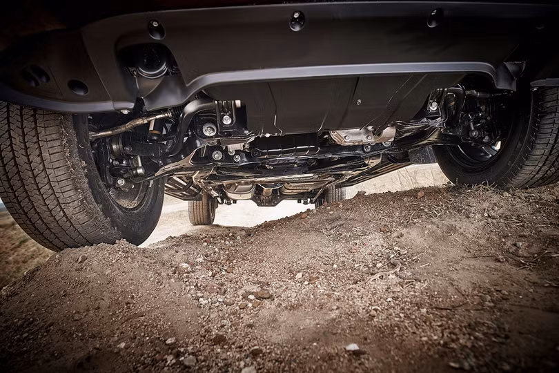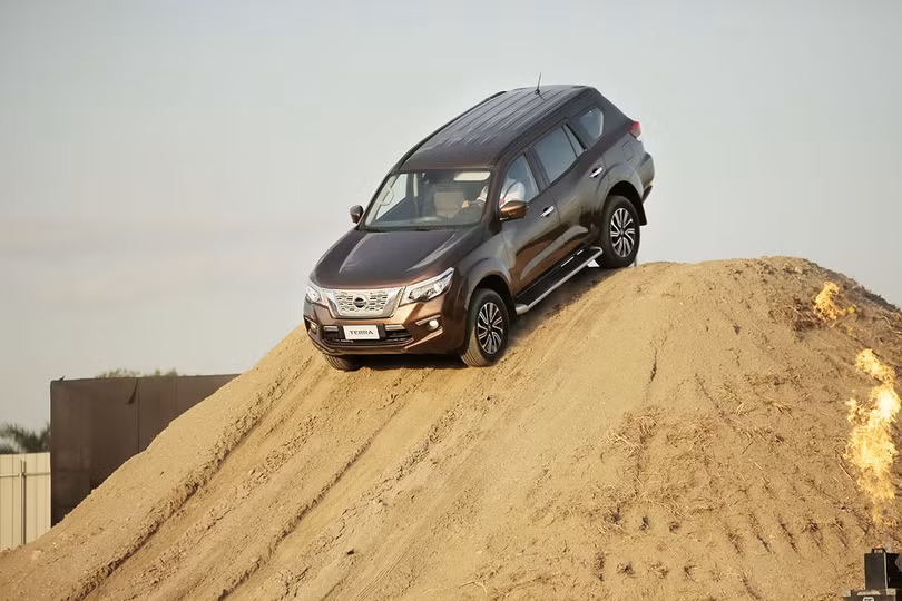 Ngoài ra, khoảng sáng gầm xe 225 mm của Terra cũng được Nissan cho rằng đây sẽ là một thế mạnh của chiếc xe này khi giúp hạn chế rủi ro va chạm gầm khi đi trên những cung đường gồ ghề, mấp mô. Xe vẫn sử dụng hệ thống phanh đĩa phía trước và tang trống ở phía sau.