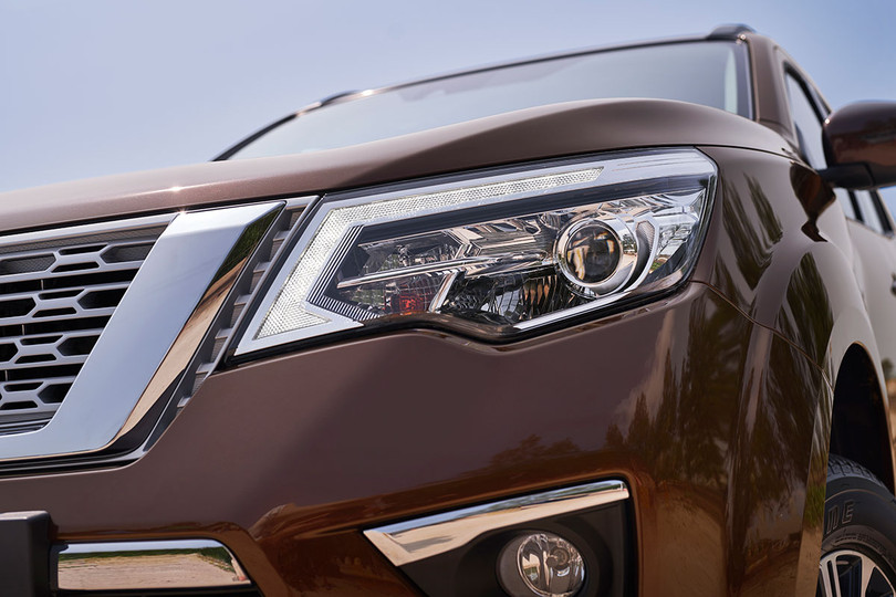 So với NP300 Navara, Nissan Terra đã có một số điều chỉnh ở phần đầu xe, lưới tản nhiệt trung tâm đã làm lớn hơn, cụm đèn pha LED cũng tạo hình góc cạnh hơn. Trong khi cụm đèn hậu được tạo điểm nhấn bằng đèn phanh dạng mí LED khá nổi bật.