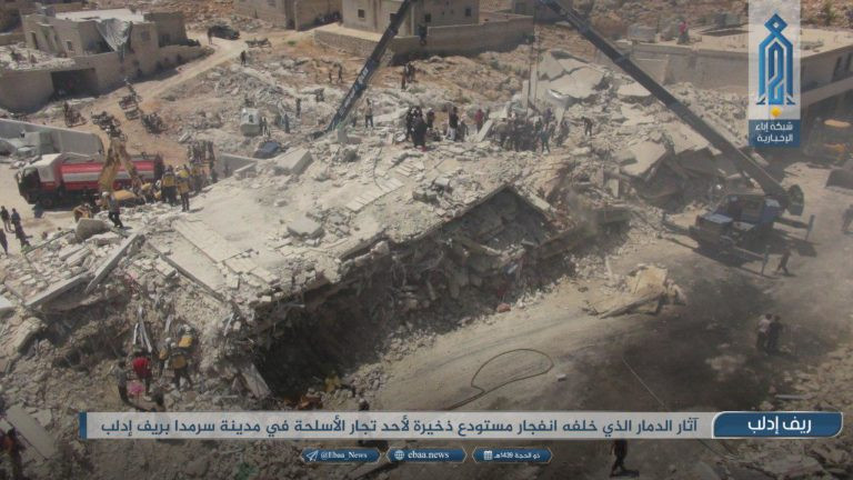 Tháng trước, một vụ nổ tương tự phá hủy một kho đạn lớn trong quyền sở hữu của nhóm khủng bố nước ngoài Đảng Hồi giáo Turkistan (TIP) nằm trong Liên minh tư tưởng Al-Qaeda tại thị trấn Eshtabraq thuộc vùng nông thôn phía tây bắc tỉnh Idlib. Các truyền thông viên đối lập Syria cáo buộc các nhóm tình báo nước ngoài chịu trách nhiệm về vụ nổ này, nhưng không có một cơ quan hoặc một quốc gia nào nhận trách nhiệm về vụ nổ này.