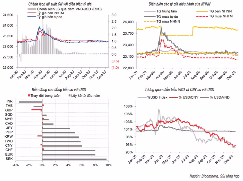 Theo SSI, diễn biến quốc tế và cung cầu ngoại tệ trong nước khá thuận lợi nên tỷ giá USDVND sẽ giữ xu hướng đi ngang.