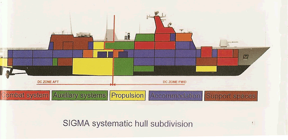 Cơ sở căn bản của hệ thống các lớp tàu Sigma tuần tra và hộ tống là thân tàu được thiết kế thành các module với những thành phần kỹ thuật bên trong của nó, Sigma là phương pháp cấu trúc thân tàu bằng gải pháp tích hợp các module hình học không gian 3D. Đây là phương pháp thiết kế tàu hoàn toàn mới, cho phép có thể tăng chiều dài cũng như khả năng của Sigma ship lên đến bất cứ giới hạn nào. Mã số của Sigma được tính là chiều dài thân tầu. Từ đó có thể tính được các tính năng kỹ chiến thuật của tàu. Sigma 9113 là tàu dài 91m rộng 13 m, SIGMA 10513 là tàu dài 105 m và rộng 13 m.