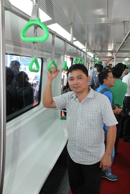 Thứ trưởng, Bộ GTVT Nguyễn Hồng Trường tham quan mẫu tàu điện.