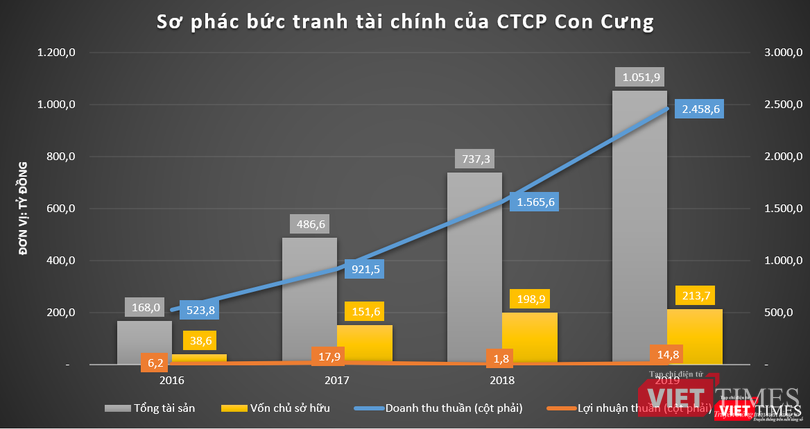 Cụ thể, theo dữ liệu của VietTimes, trong năm 2019, Con Cưng ghi nhận doanh thu thuần đạt mức 2.458,6 tỉ đồng, tăng 1,57 lần so với năm 2018. Đồng thời, công ty này cũng báo lãi thuần năm 2019 đạt 14,8 tỉ đồng, cao gấp 8,5 lần so với năm trước.