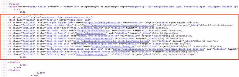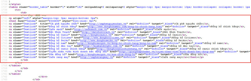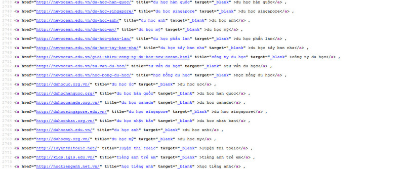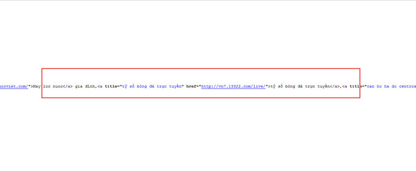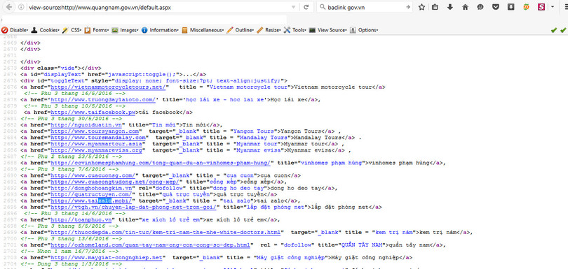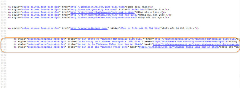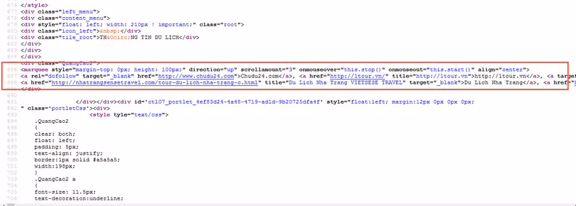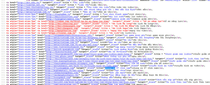 - Ảnh chụp website: Không hiển thị trên website nhưng khi view-source lại thấy các link chuyển hướng đến các website khác