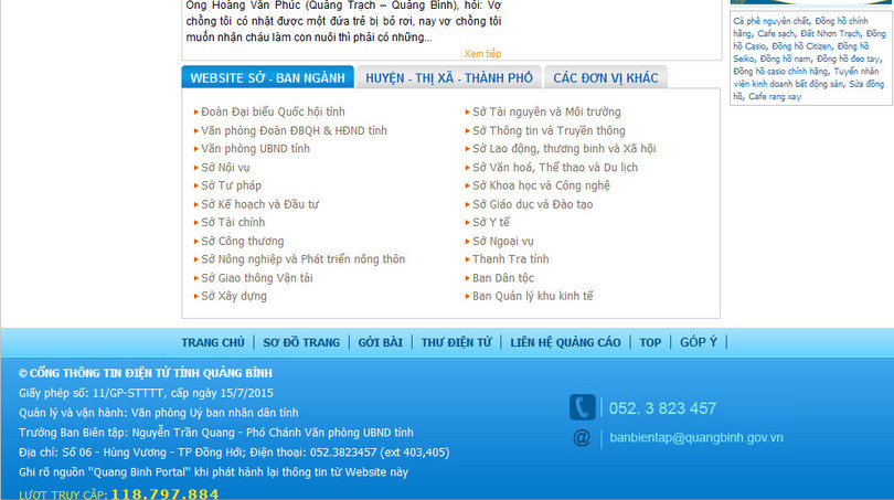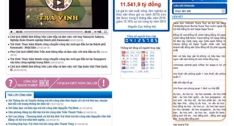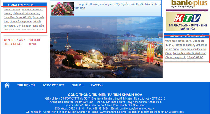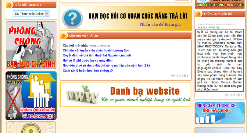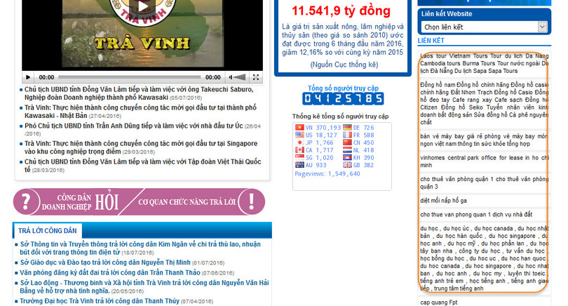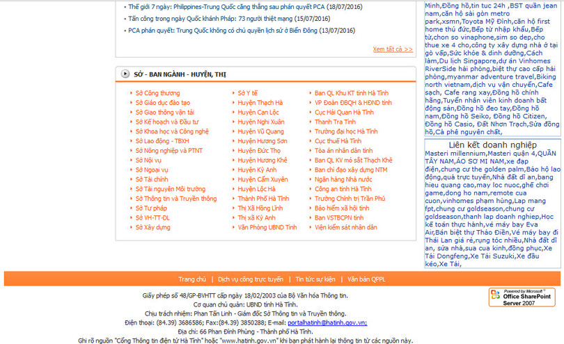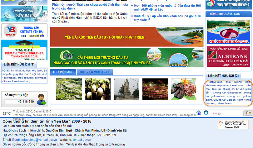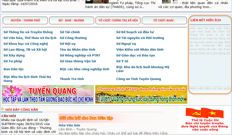 VietTimes xin liệt kê danh sách cổng thông tin các tỉnh, tính đến 12h ngày 18/7/2016, vẫn còn tồn tại các textlink quảng cáo. Cụ thể: