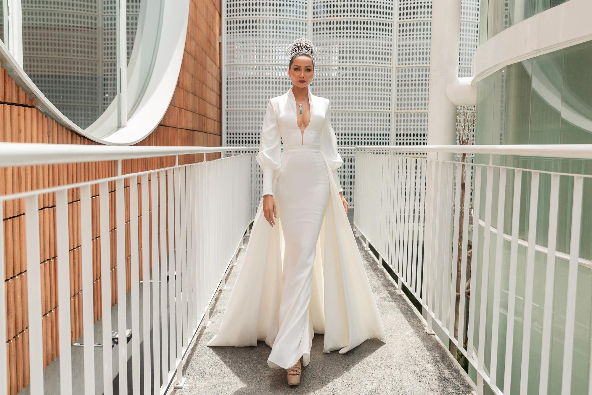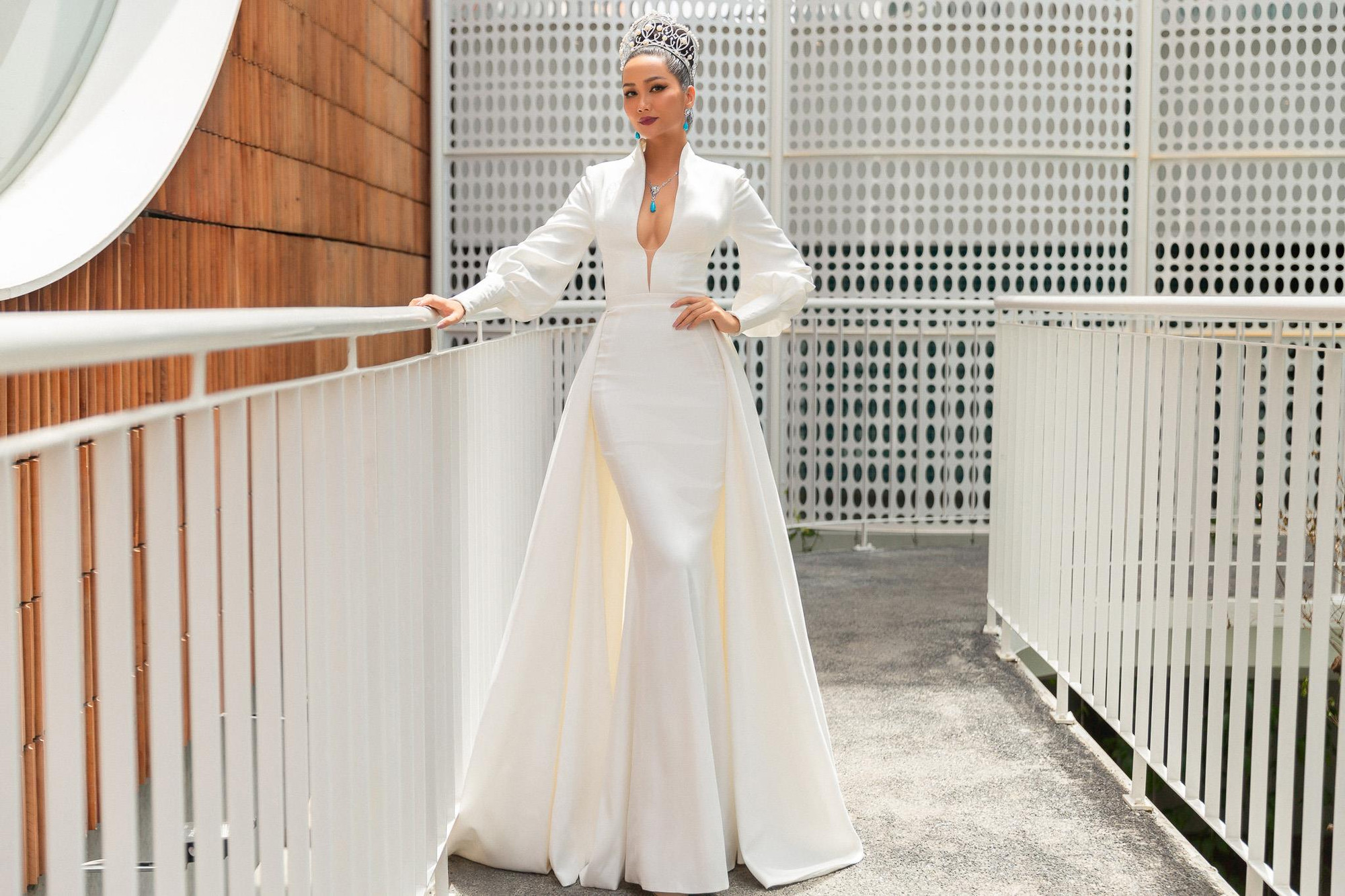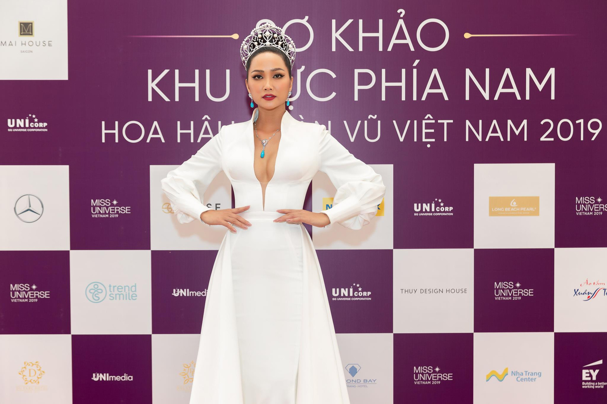Xuất hiện tại buổi sơ khảo với vai trò Host chương trình “Tôi là Hoa hậu Hoàn vũ Việt Nam 2019”, Hoa hậu H’Hen Niê khoe vẻ đẹp rạng ngời trong trang phục màu trắng