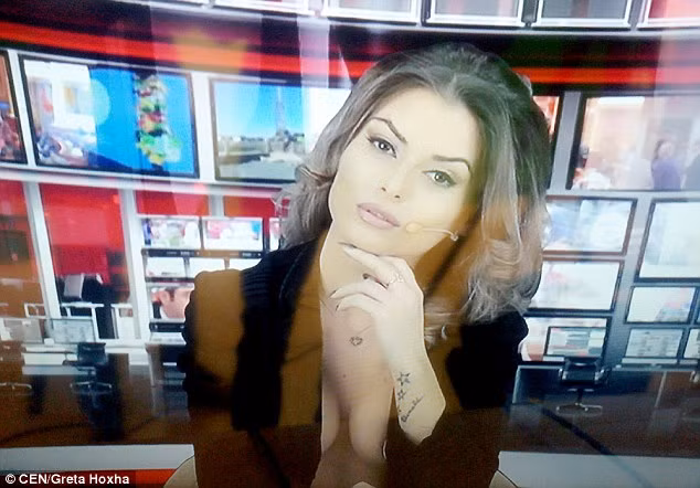 Greta Hoxha trong một buổi dẫn chương trình tại đài truyền hình Albania.