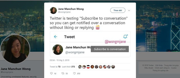 Một tính năng ẩn của Twitter được Wong "bóc mẽ" trên tài khoản của mình. Ảnh: Twitter.
