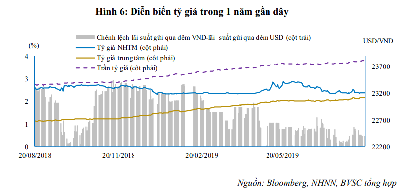 Theo báo cáo, nguồn cung ngoại tệ được dự báo vẫn dồi dào trong thời gian tới nhờ các thương vụ mua bán, sáp nhập trong cuối năm 2019 như: BIDV (Mã CK: BID) sẽ bán 15% vốn cho KEB Hana Bank tương đương với khoảng 882 triệu USD, Vietcombank (Mã CK: VCB) có khả năng bán 6,5% cổ phần, Ngân hàng Quân Đội (Mã CK: MBB) dự kiến bán 7,5% vốn cho nước ngoài.