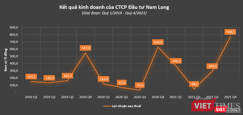 Trừ đi chi phí, NLG báo lãi sau thuế 768,5 tỉ đồng, tăng 21% so với cùng kỳ năm trước. Song, nếu trừ đi phần lợi nhuận sau thuế của cổ đông không kiểm soát, lợi nhuận sau thuế của cổ đông công ty mẹ NLG chỉ đạt 361,3 tỉ đồng, giảm tới 42% so với cùng kỳ quý 4/2020.