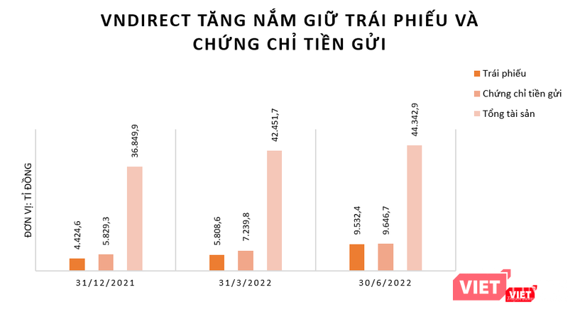 Cụ thể, tại ngày 30/6/2022, VND nắm giữ 6.870 tỉ đồng trái phiếu doanh nghiệp, cao gấp 3,9 lần so với đầu năm. Tương tự, VND cũng nắm giữ tới 9.646,7 tỉ đồng chứng chỉ tiền gửi, tăng 3.816,7 tỉ đồng so với đầu năm 2022.