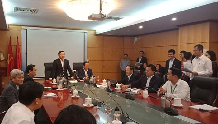Trước đó, mở đầu cuộc họp, lấy lý do phòng họp chật và để tạo không khí thoải mái cho các đại biểu phát biểu thẳng thắn, Bộ trưởng Bộ Tài nguyên và Môi trường Trần Hồng Hà đề nghị báo chí chia sẻ, tác nghiệp trong 15 phút đầu, sau đó bộ sẽ cung cấp thông cáo về toàn bộ nội dung cuộc họp.