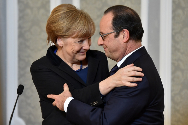 Ngày 12/2/2015, tại thủ đô Misk của Belarus, các nước Đức, Pháp, Nga và Ukraina đã tham gia cuộc hội đàm 4 bên và ký kết Hiệp định ngừng bắn. Thủ tướng Đức Angela Merkel và tổng thống Pháp Hollande thân mật hàn huyên trong giờ giải lao.