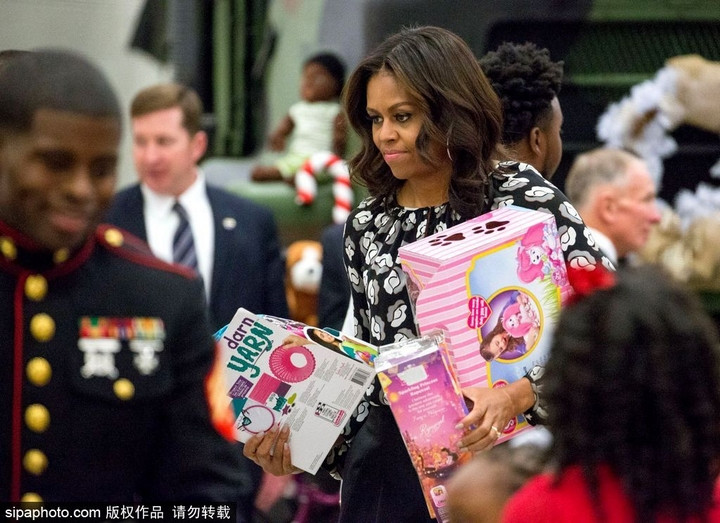 Ngày 9/12/2015, tại Washington, đệ nhất phu nhân Michelle tặng quà Noel cho con của lực lượng thủy quân lục chiến Mỹ và bức ảnh có chữ ký của bà.