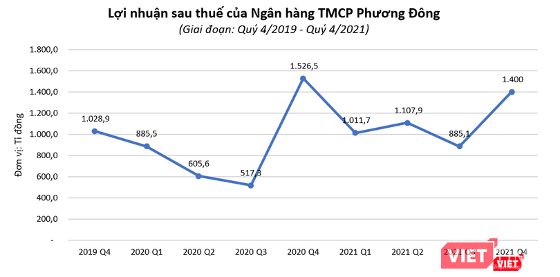 Ngân hàng TMCP Phương Đông (Mã CK: OCB) vừa công bố kết quả kinh doanh quý 4/2021 với khoản lãi sau thuế 1.400 tỉ đồng, giảm 8,2% so với cùng kỳ năm trước.