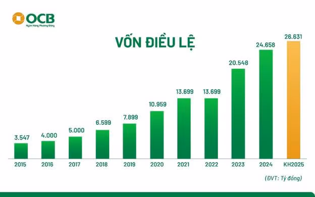 Năm 2025, OCB đặt mục tiêu tổng tài sản đạt 316.779 tỷ tăng 13%, tổng huy động thị trường 1 đạt 218.842 tỷ tăng 14%. Đặc biệt, với nền tảng vững chắc từ năm 2024, thông qua sự chuyển dịch cơ cấu mạnh mẽ sang nhóm khách hàng có tiềm năng tăng trưởng tốt, OCB dự kiến tổng dư nợ thị trường 1 tăng 16%, đạt 208.472 tỷ. Lợi nhuận trước thuế tăng 33% so với năm 2024, đạt 5.338 tỷ.