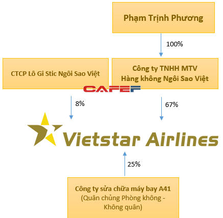Cổ đông lớn nhất của Vietstar Airlines khi đó là Công ty TNHH MTV Hàng không Ngôi Sao Việt có vốn điều lệ 320 tỷ đồng. Ông Phạm Trịnh Phương - Chủ tịch của Công ty TNHH MTV Hàng không Ngôi Sao Việt cũng là Chủ tịch HĐQT của Vietstar Airlines.