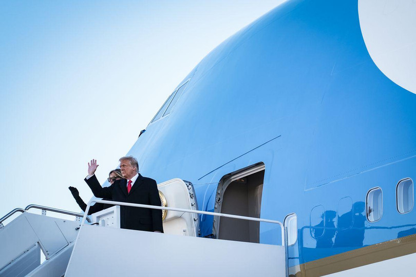 Chuyên cơ Không lực Một chở ông Trump đáp xuống Florida khi ông vẫn là Tổng thống Mỹ, khoảng một giờ trước khi Biden nhậm chức.
