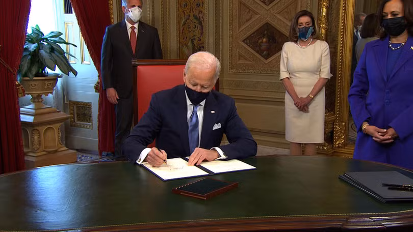 Tổng thống Biden ký 3 tài liệu trong lúc làm việc tại phòng của Tổng thống. Sau đây là các văn bản ông đã ký: