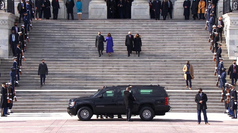 Tổng thống Trump trước đó có lễ chia tay ngắn tại căn cứ không quân Andrews. Trong bài phát biểu ngắn, ông Trump hứa sẽ "luôn luôn đấu tranh" và chúc chính quyền Biden "gặp nhiều may mắn".