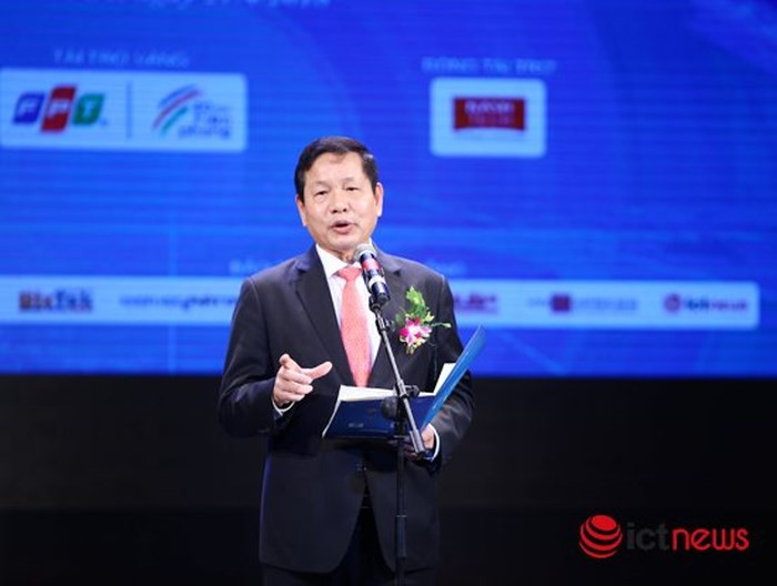 Ông Trương Gia Bình, Chủ tịch Hiệp hội Phần mềm và Dịch vụ CNTT Việt Nam - VINASA phát biểu khai mạc lễ kỷ niệm 15 năm Danh hiệu Sao Khuê, Công bố và trao danh hiệu Sao Khuê 2018 diễn ra ngày 21/4.