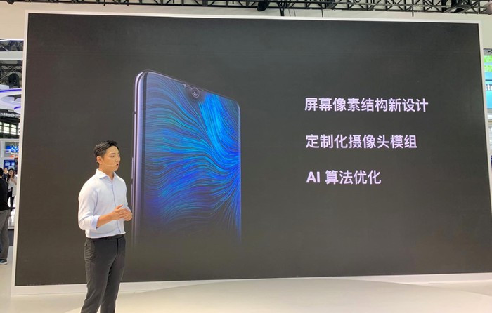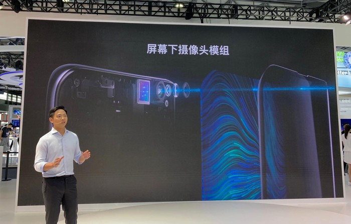 Tại sự kiện MWC 2019 Thượng Hải, Oppo đã giới thiệu nguyên mẫu smartphone có camera selfie nằm ẩn dưới màn hình. Oppo cho biết, màn hình hiển thị của model này được chế tạo từ một vật liệu trong suốt, ánh sáng có thể xuyên qua. Nhờ đó thiết bị có thể chụp được ảnh như dùng một chiếc camera selfie thông thường.