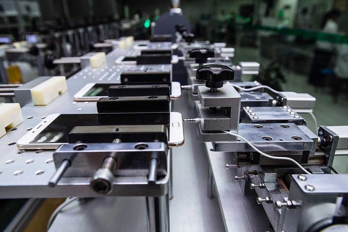 Với kích thước bo mạch chủ trên smartphone ngày càng nhỏ dần đồng nghĩa với khâu sản xuất đòi hỏi các bước thực hiện tỉ mỉ hơn. Hãng cũng sử dụng robot trong quá trình lắp ráp, nhưng chúng vẫn được giám sát bởi con người để đảm bảo mọi thứ hoạt động theo yêu cầu.