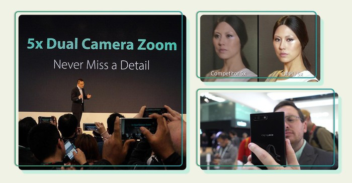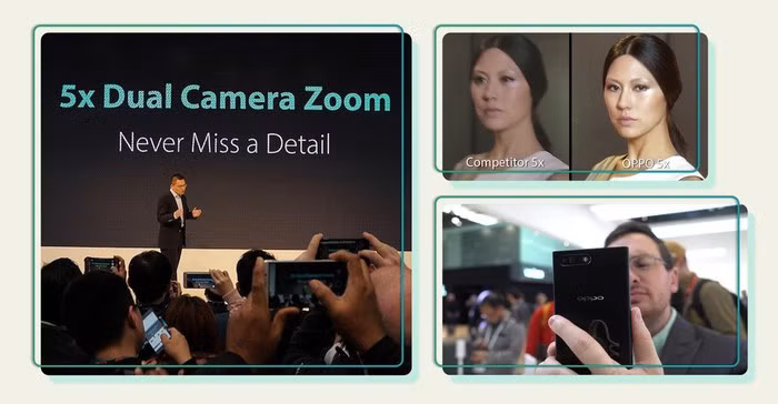 Ngày 23/2/2017, Oppo chính thức trình làng công nghệ Dual Camera Zoom với khả năng zoom quang 5x tại triển lãm MWC 2017. Nên nhớ khi đó, những chiếc smartphone đẳng cấp nhất thị trường cũng mới có thể zoom 2x. Công nghệ zoom quang mới chỉ nhen nhóm xuất hiện trên một vài mẫu smartphone cao cấp. Dễ hiểu tại sao công bố của Oppo khi ấy được ví như một “quả bom” thả xuống thị trường nhiếp ảnh di động.