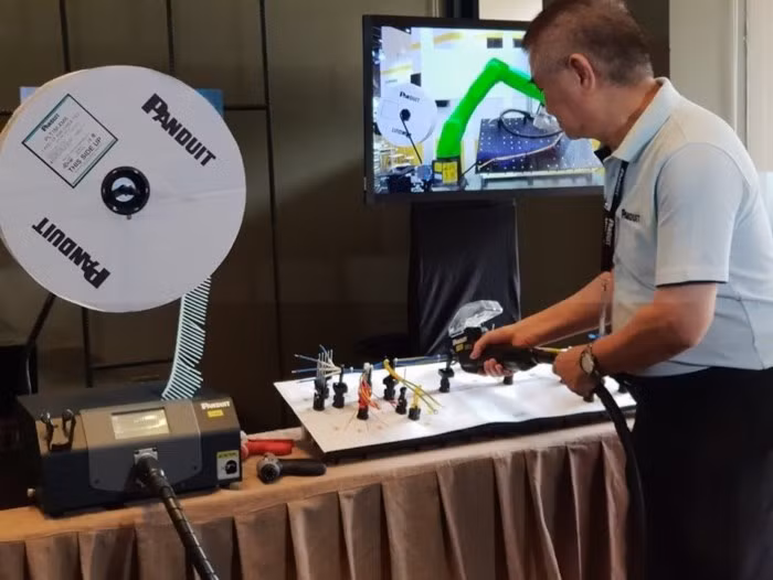 Một thiết bị cầm tay giúp buộc dây cáp của Panduit.