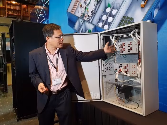 Một đại diện Panduit giới thiệu về tủ dùng trong nhà máy.