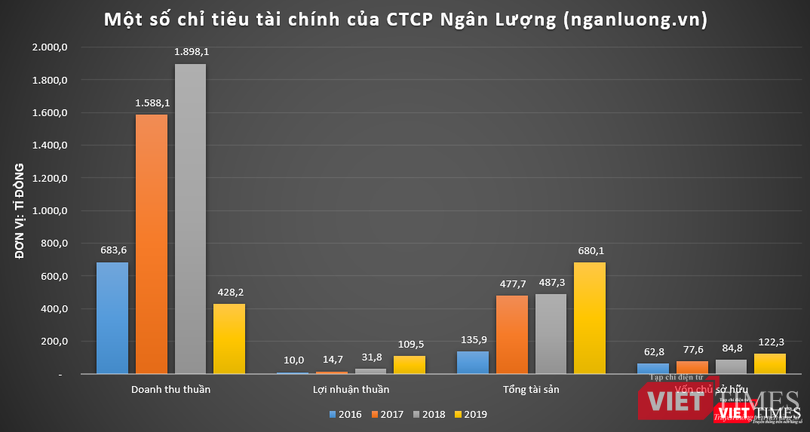 Dữ liệu của VietTimes cho thấy, doanh thu của Ngân Lượng liên tục tăng trưởng trong giai đoạn 2016 – 2018. Đỉnh điểm là năm 2018, doanh thu của công ty này đạt mức 1.898,1 tỉ đồng, tăng 19,5% so với năm 2017.