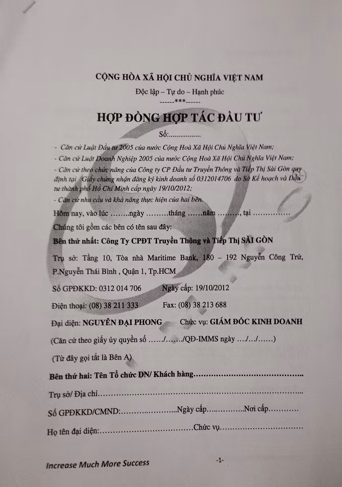 CTCP Đầu tư truyền thông và tiếp thị Sài Gòn (IMMS JSC) đặt trụ sở văn phòng tại lầu 10, tòa nhà Maritime Bank, đường Nguyễn Công Trứ, quận 1, TP.HCM và bắt đầu thực hiện kinh doanh trái phép sàn vàng ảo tại đây.