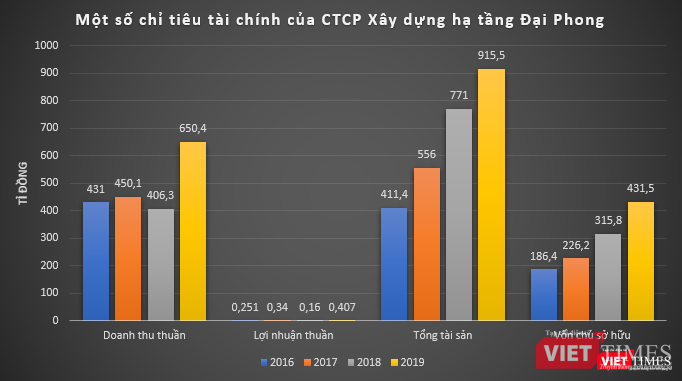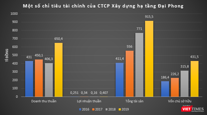 Dữ liệu của VietTimes cho thấy, trong giai đoạn 2016 - 2019, doanh thu thuần của Đại Phong (công ty mẹ) lên tới cả trăm tỉ đồng, tuy nhiên lợi nhuận thu về lại rất mỏng, chỉ vài trăm triệu đồng mỗi năm.