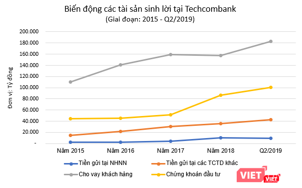 Tính đến ngày 30/6/2019, giá trị chứng khoán đầu tư của Techcombank đạt 100.234 tỷ đồng, tăng 2,26 lần so với cuối năm 2015. Trong đó, chứng khoán nợ do các tổ chức kinh tế trong nước phát hành do Techcombank nắm giữ có số dư 45.456 tỷ đồng, tăng 5,58 lần so với năm 2015. Đó là chưa kể khoản chứng khoán đầu tư nắm giữ đến ngày đáo hạn 14.406 tỷ đồng mà ngân hàng này nắm giữ tính đến cuối Quý 2/2019.