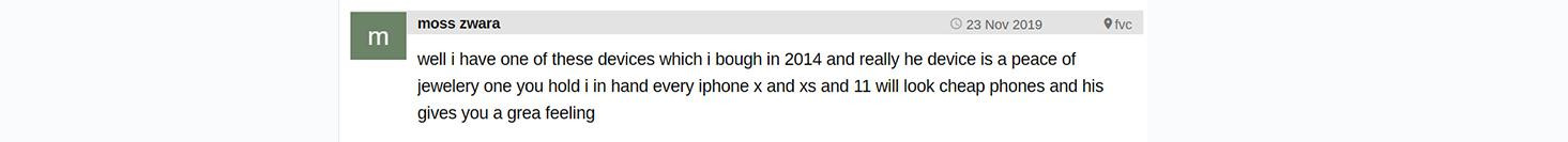 Một người dùng có nick là Moss Zwara viết: “Tôi đã mua chiếc Vertu vào năm 2014. Thiết bị này là một món đồ trang sức mà khi bạn cầm trên tay, mọi chiếc iPhone X, XS và 11 giống như những chiếc điện thoại rẻ tiền. Vertu đem lại cho tôi cảm giác tuyệt vời”.