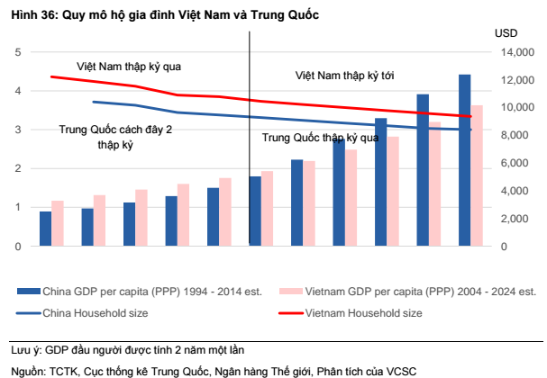 Quy mô các gia đình ở Việt Nam đã giảm. Xu hướng hiện tại, các cặp gia đình trẻ thường tách khỏi gia đình của cha mẹ. Do vậy quy mô gia đình sẽ nhỏ hơn, và nhu cầu nhà ở sẽ lớn hơn. Theo ước tính của VSCS, hiện Việt Nam có khoảng 8 triệu hộ gia đình tại các khu vực đô thị, và sẽ tăng khoảng 2 triệu hộ đến năm 2025. Do vậy, nhu cầu nhà ở cho các hộ gia đình nhỏ này đang rất lớn. Phần lớn trong số các hộ gia đình trẻ tách ra từ cha mẹ, đều chỉ có nhu cầu căn hộ tầm trung hoặc thấp, phù hợp với kinh tế gia đình.
