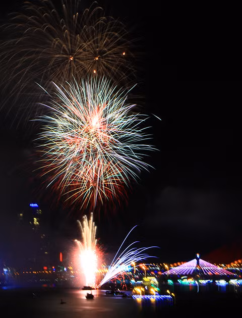 Đây là lần đầu tiên thành phốĐà Nẵngbắn pháo hoa trên sà lan đặt giữa sông Hàn. Nhờ đó, người dân có thể chiêm ngưỡng màn pháo hoa từ hai bên bờ sông, trên những cây cầu hoặc trên nhà cao tầng.